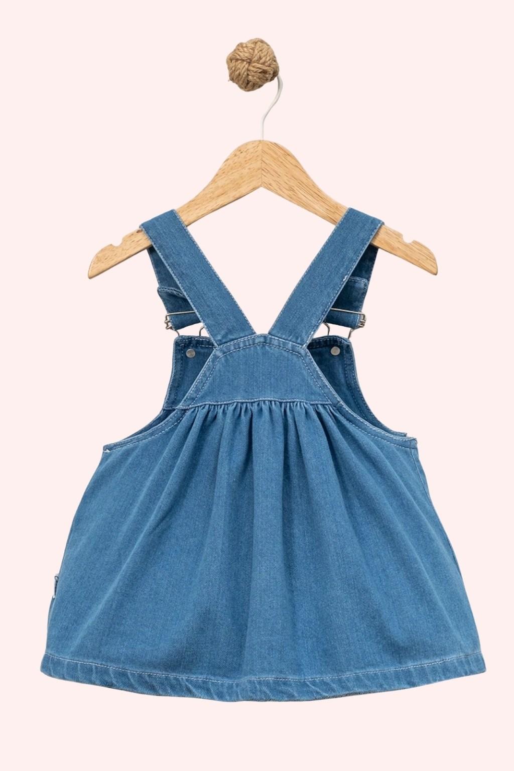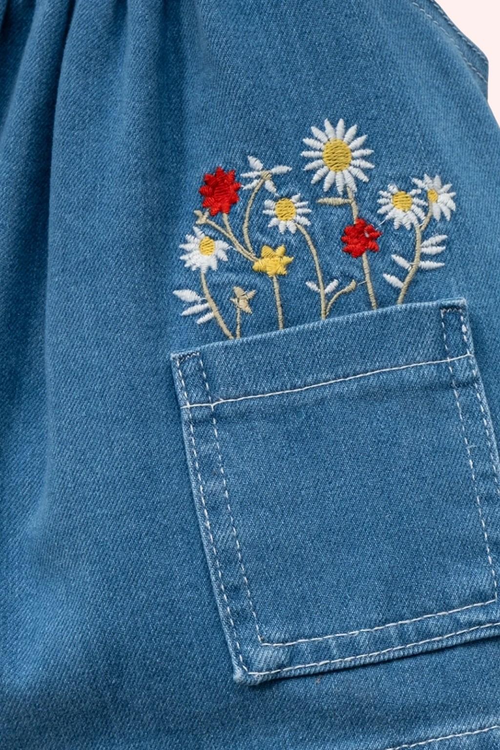 1-4 yaş kız bebekler için tasarlanan bu gömlekli takım; nakış detaylı kot jile elbise ve iç gömlek ile tamamlanmış şık bir kombin sunar. Askılı jile formu sayesinde kolay giyilir, cep ve çiçek nakış detaylarıyla sevimli bir görünüm sağlar. Günlük kullanım ve özel günler için ideal.