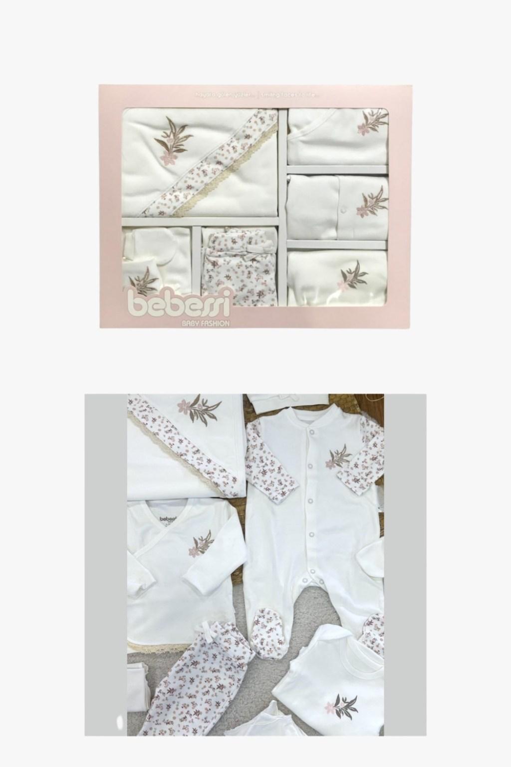 Yenidoğan bebeğiniz için özenle hazırlanan 10 parça hastane çıkış seti; hem konfor hem de şıklığı bir arada sunar. Yumuşak ve bebeğin hassas cildine uygun kumaşı sayesinde ilk günlerden itibaren güvenle kullanılabilir. Zarif çiçek desenli detaylarıyla özel anlar için ideal bir seçimdir.