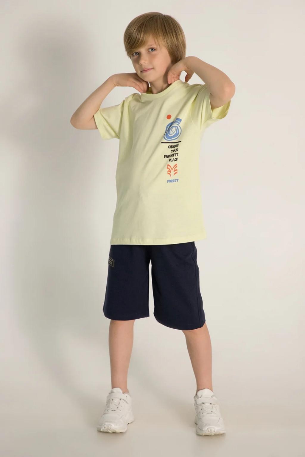 4-8 yaş arası erkek çocuklar için tasarlanan baskılı tişört, sade rengi ve modern desen detayıyla günlük kombinler için ideal bir modeldir.