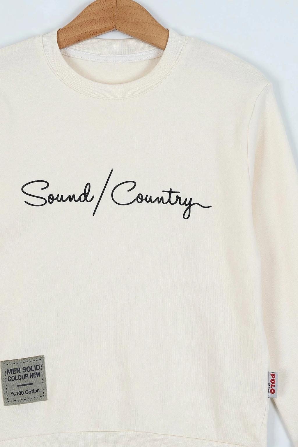 5-8 yaş arası erkek çocuklar için tasarlanan krem renk sweatshirt, minimal yazı baskı detayıyla sade ve şık bir görünüm sunar. Günlük kombinlerde rahatlıkla tercih edilebilecek bir modeldir.