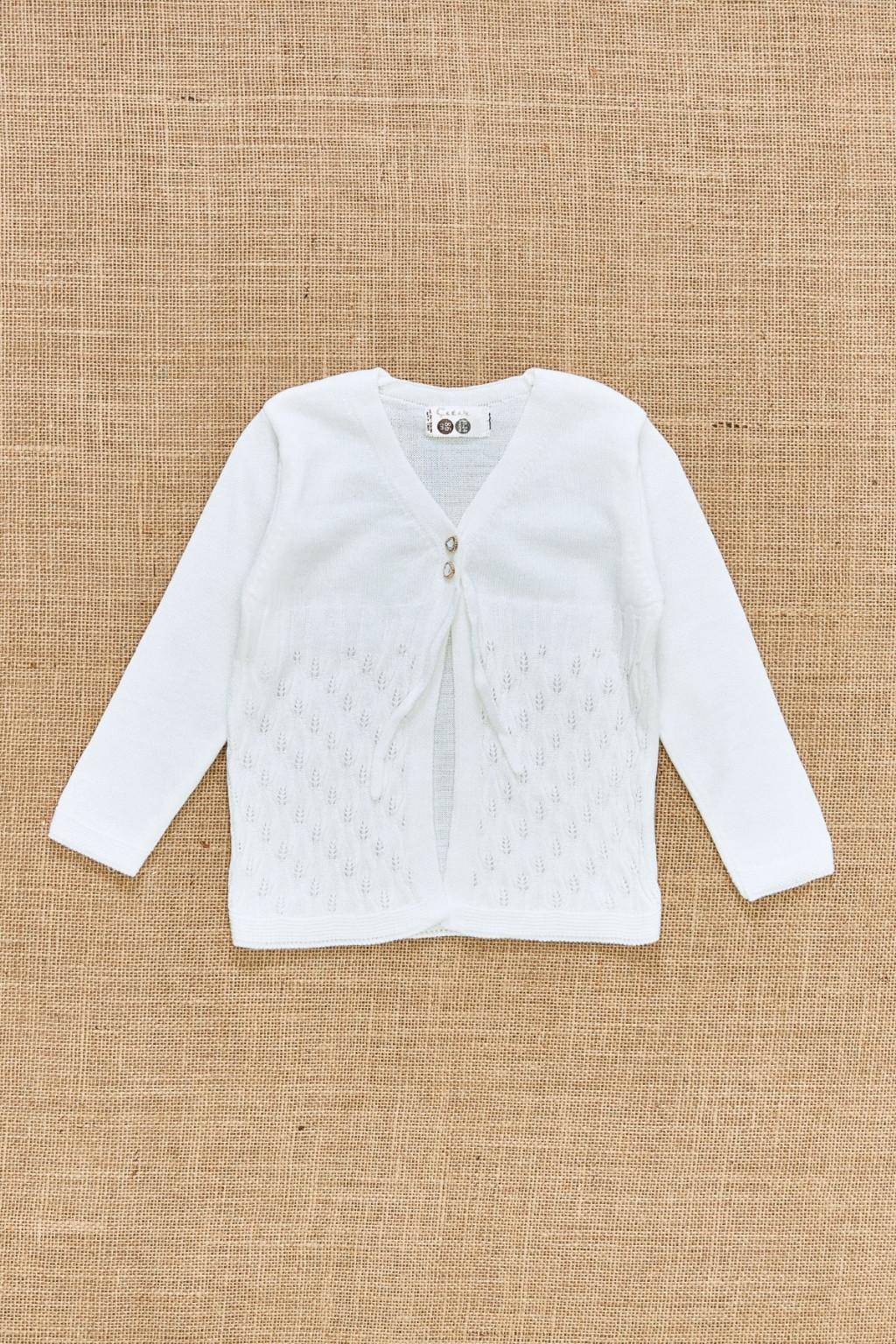 6-24 ay kız bebekler için tasarlanan bu zarif triko hırka; ajurlu desen detayı ve yumuşak dokusu ile hem günlük hem özel kombinleri tamamlayan şık bir parçadır. Hafif yapısı sayesinde mevsim geçişlerinde rahatlıkla kullanılabilir. Elbise ve takımların üzerine kombin yapmak için idealdir.