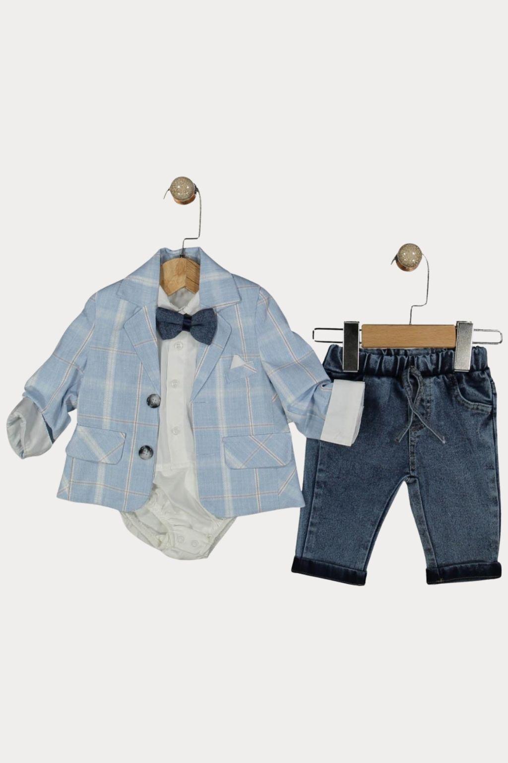 Erkek Bebek 0-12 Ay Ekose Ceketli Tam Takım
