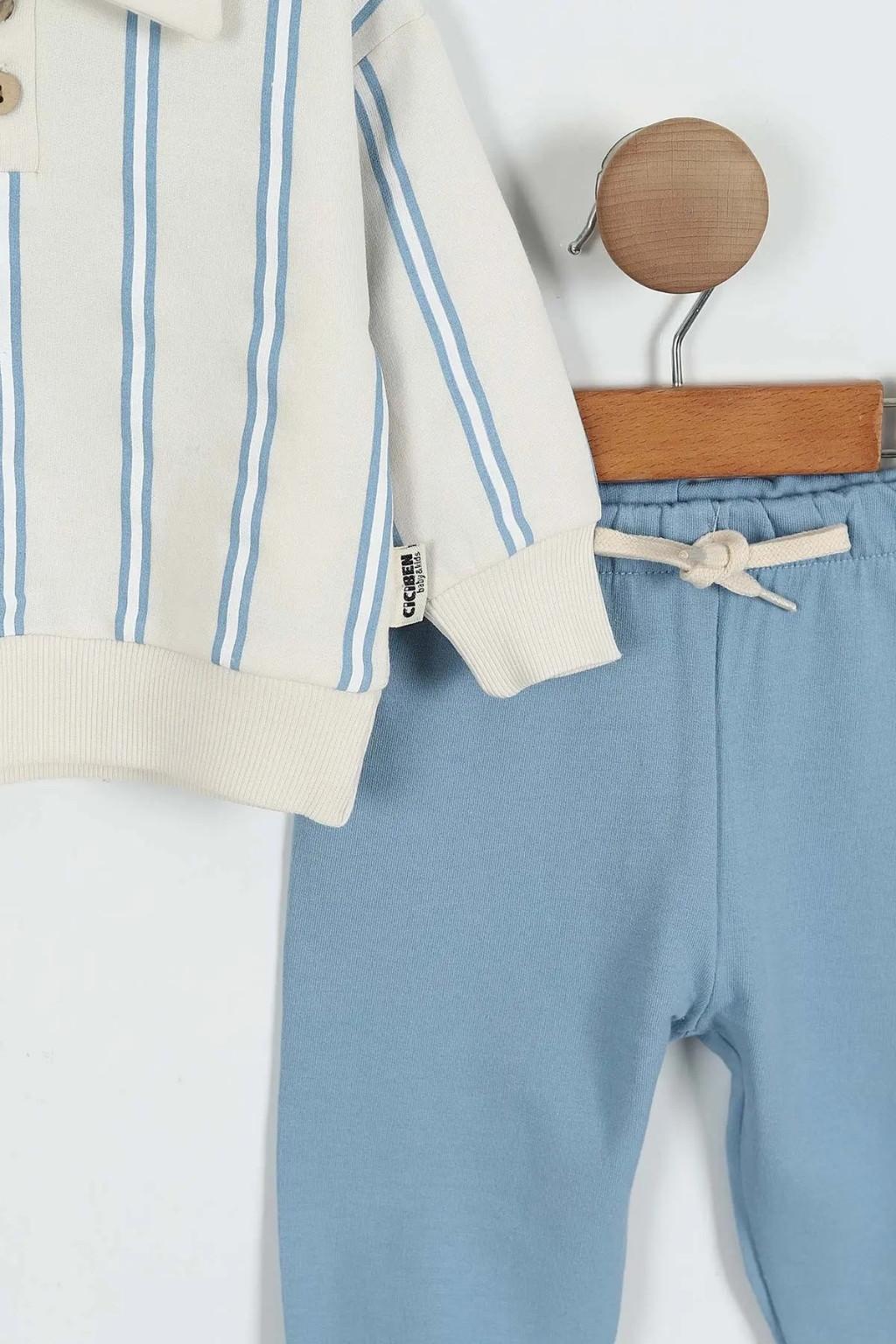 Hem günlük kullanım hem dış kombinlerde tercih edilebilecek rahat ve modern bir erkek bebek setidir.