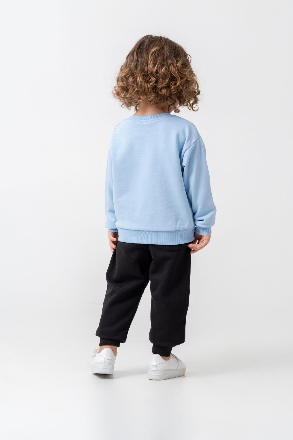 Erkek Çocuk 3-7 Yaş Alt Üst İkili Takım, mavi sweatshirt ve kargo cepli pantolondan oluşan rahat bir kombin sunar. Pamuk karışımlı kumaşı sayesinde gün boyu konfor sağlar; esnek bel yapısı ve hareket özgürlüğü sunan kesimiyle oyun ve günlük kullanım için idealdir. Kargo cep detayı, şık görünümü fonksiyonellikle tamamlar. 30°C’de yıkamaya uygundur.