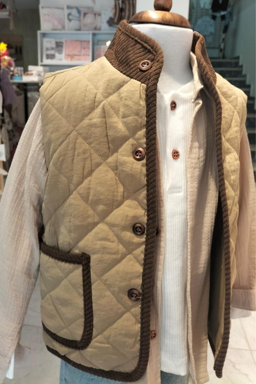 Erkek Çocuk 6-9 Yaş Haki Kapitone Yelekli Kombin, günlük şıklık ve rahatlığı bir arada sunar. Hafif ve sıcak tutan kapitone yelek, iç parça ve uyumlu jean ile tamamlanarak hem okulda hem de dış mekan kombinlerinde rahatlıkla tercih edilebilir. Hareket özgürlüğü sağlayan yapısıyla gün boyu konfor sunar.