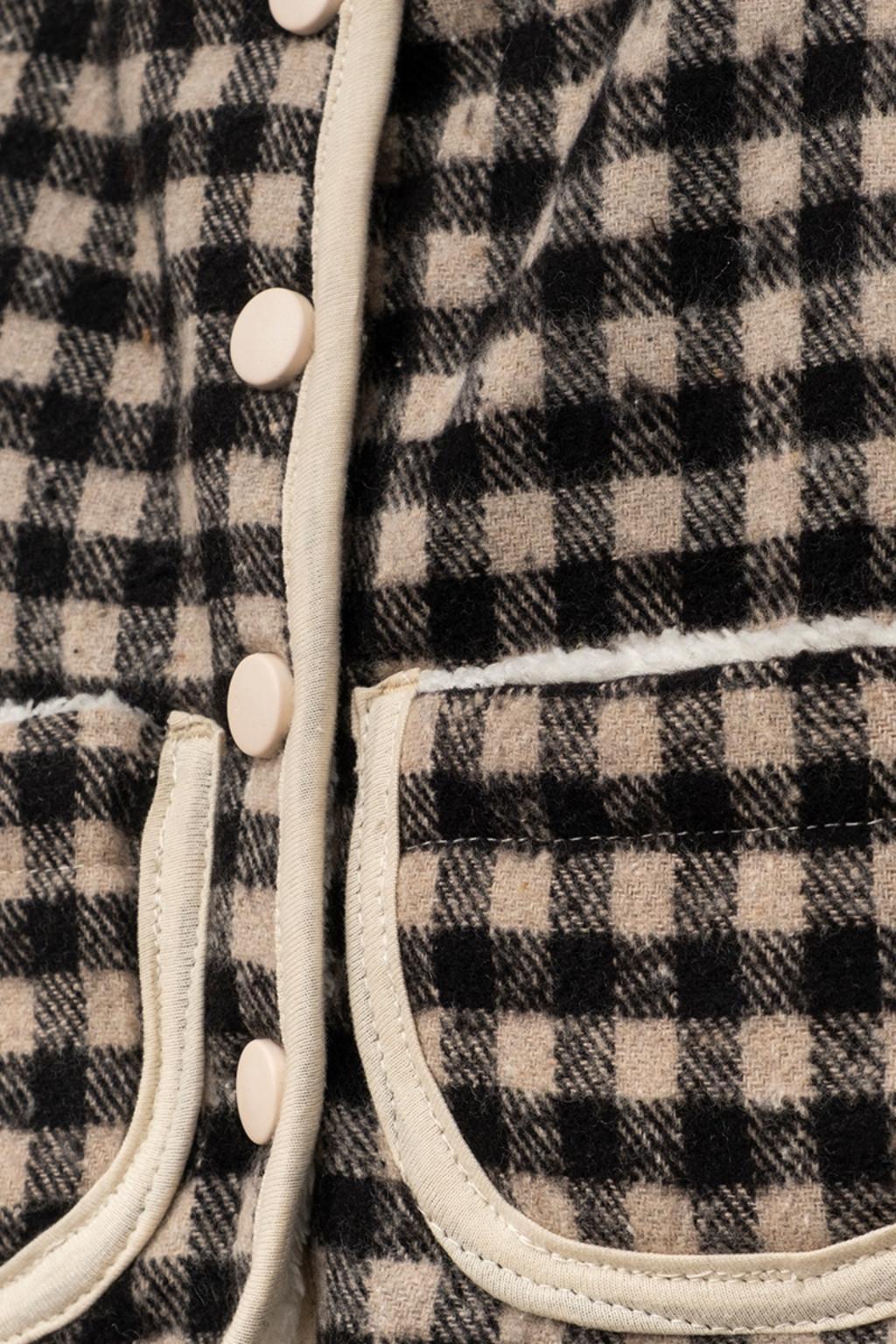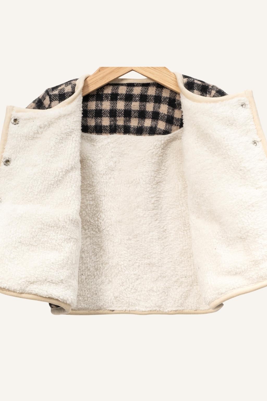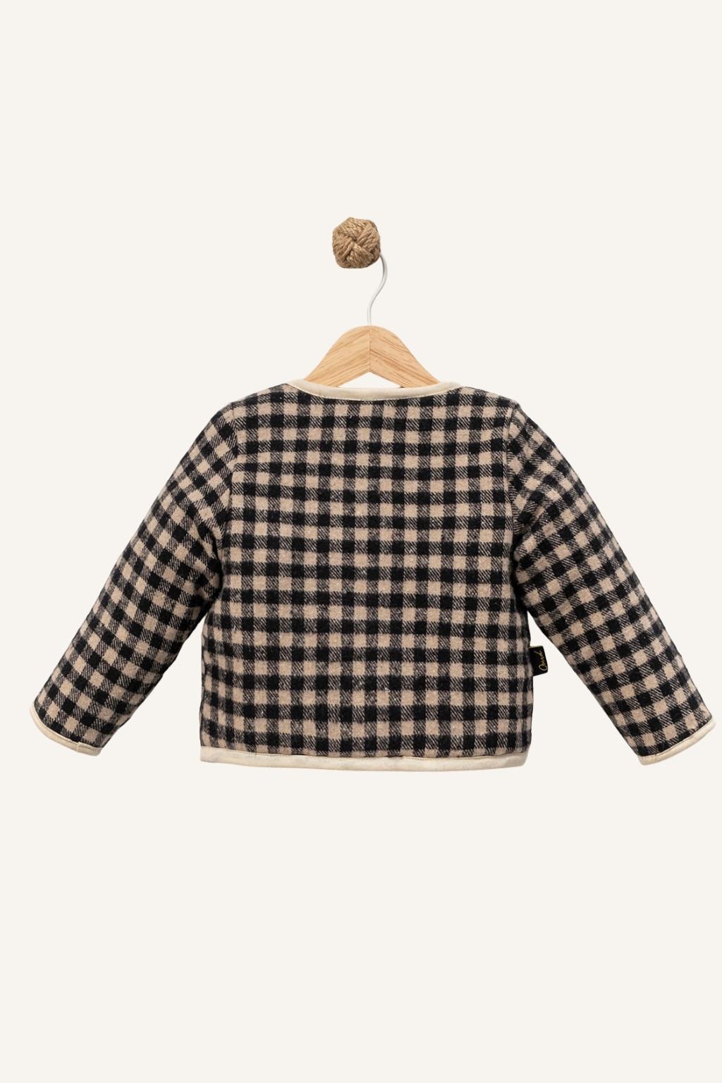 Bej-siyah kareli dokusu, ekru biye detayları ve önden düğmeli tasarımıyla kombinleri anında toparlar. Ön kısmındaki 2 büyük cep hem görünüm olarak çok güzel durur hem de kullanım kolaylığı sağlar. Günlük kombinlerde, kreş/okul çıkışlarında ve dışarı gezilerinde rahatça tercih edebilirsiniz.