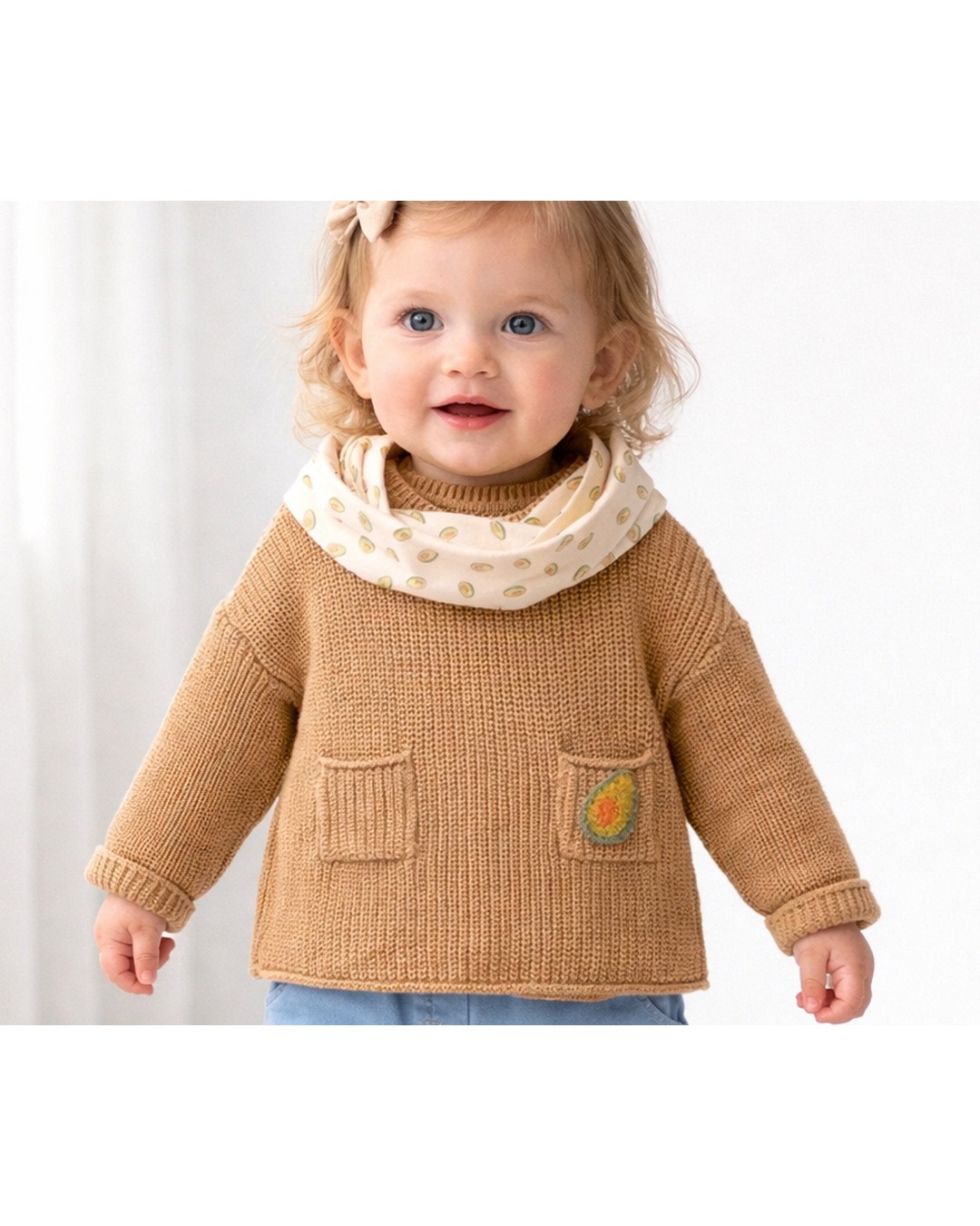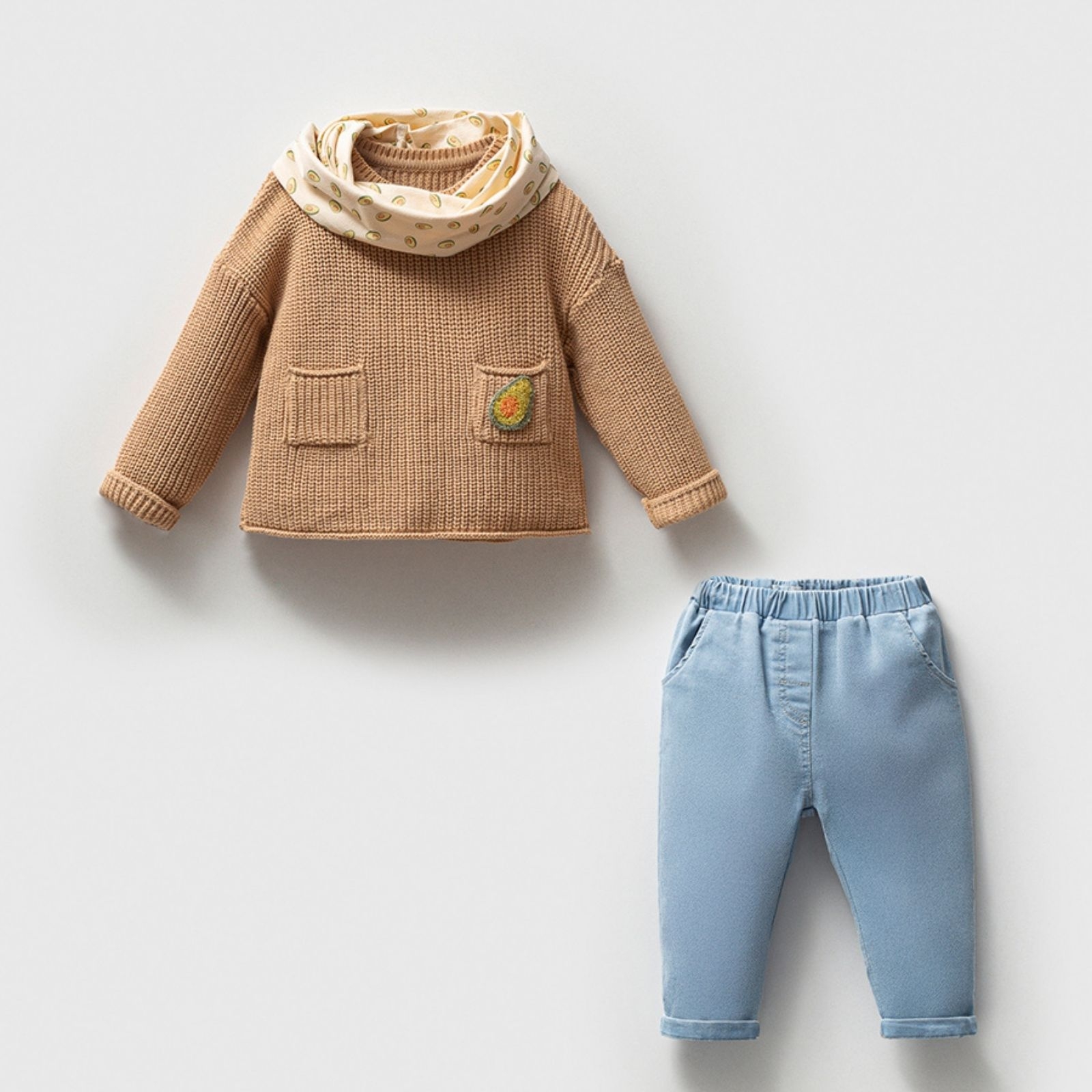 Miniklere hem şık hem de konforlu bir kombin! Yumuşak dokulu triko kazak, sevimli detayları ve desenli fularıyla günlük kullanımda pratik bir stil sunar. Lastikli bel yapısına sahip pantolon rahat hareket etmeyi destekler. Mevsim geçişlerinde ve serin günlerde ideal bir takımdır.