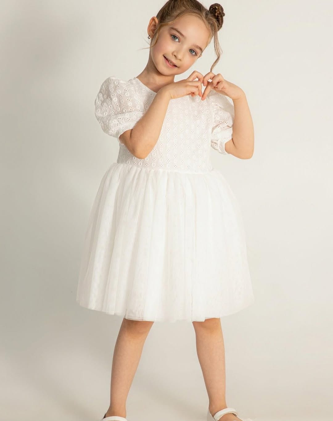 Kız Çocuk 2-5 Yaş Kısa Kollu Beyaz Elbise
