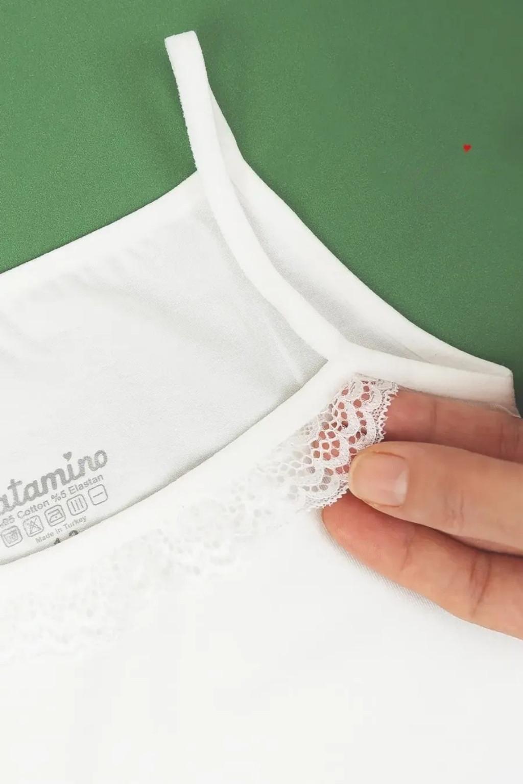 Pamuk ağırlıklı kumaşı sayesinde nefes alabilir yapıdadır ve hassas çocuk cildi için uygundur. İnce askılı tasarımı ve yakadaki zarif dantel detayı ile hem rahat hem de şık bir iç giyim ürünüdür.