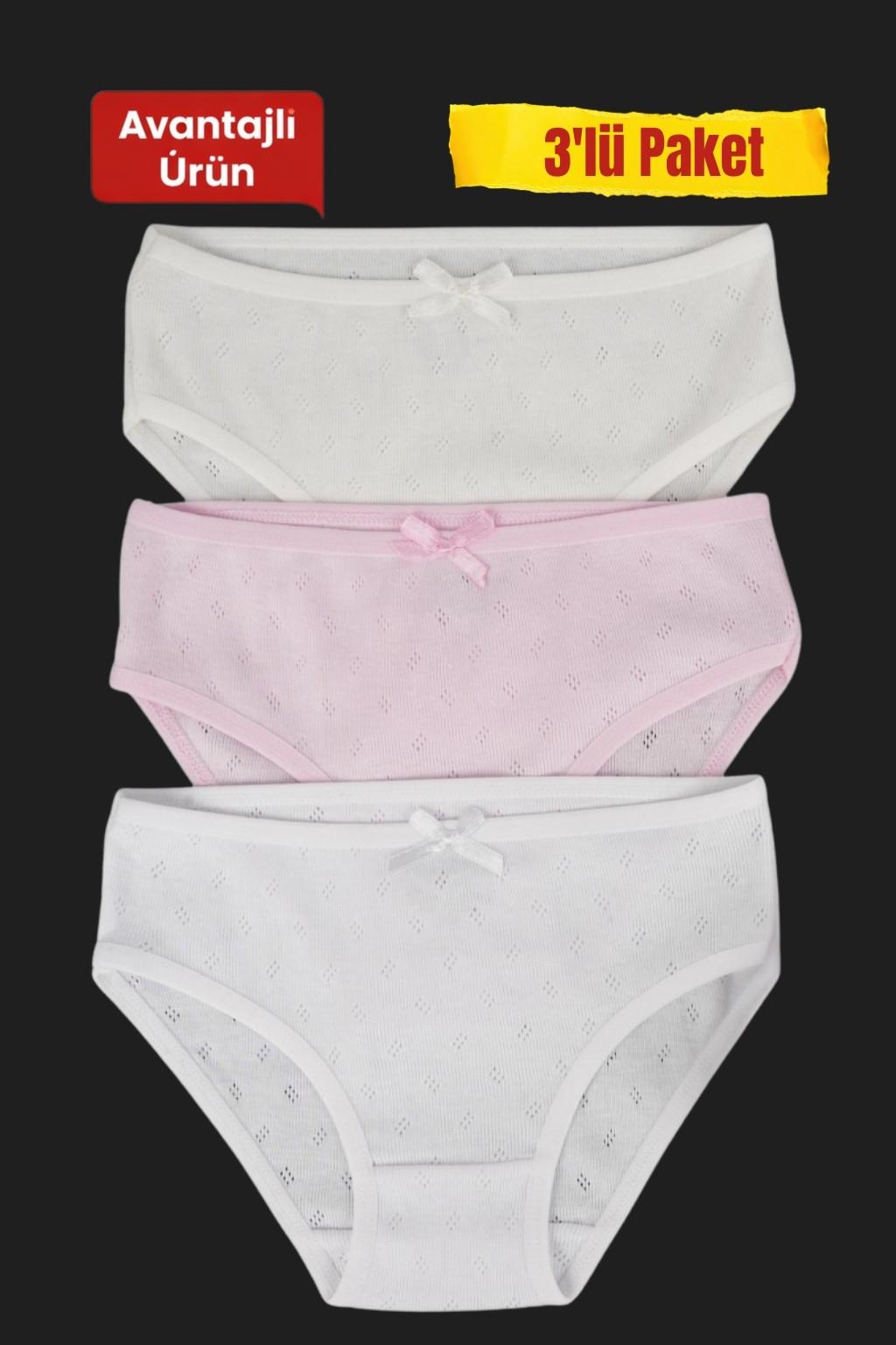 Kız çocuklar için tasarlanan 3’lü külot seti, yumuşak pamuklu dokusu sayesinde gün boyu rahat kullanım sağlar 🌸