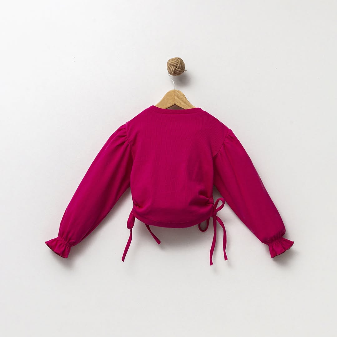 Bu sweatshirt, modern kesimi ve zarif taş detaylarıyla dikkat çekiyor. Kız çocuklarının enerjisine uygun canlı renk seçenekleriyle, her türlü kıyafet kombinine uyum sağlıyor. Uzun kollu tasarımı, günlük aktivitelerde rahatlıkla giyilebilmesi için idealdir. Hem elbiselerle hem de pantolonlarla kombinlenebilecek çok yönlülükte bir parçadır.