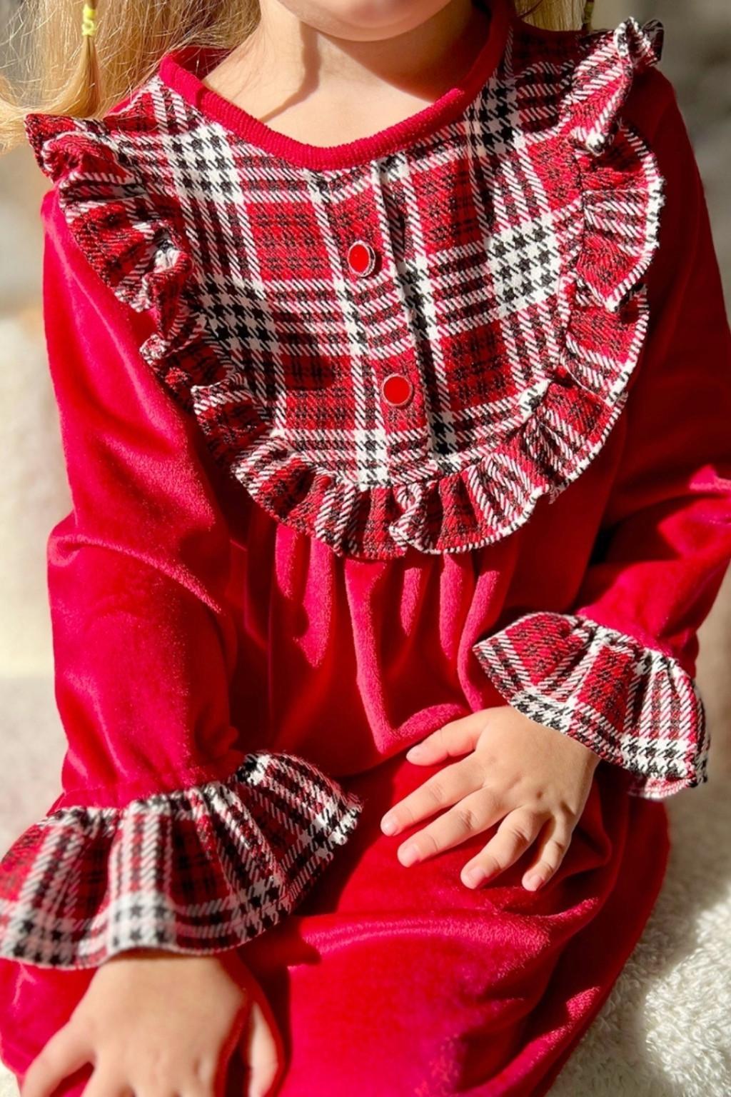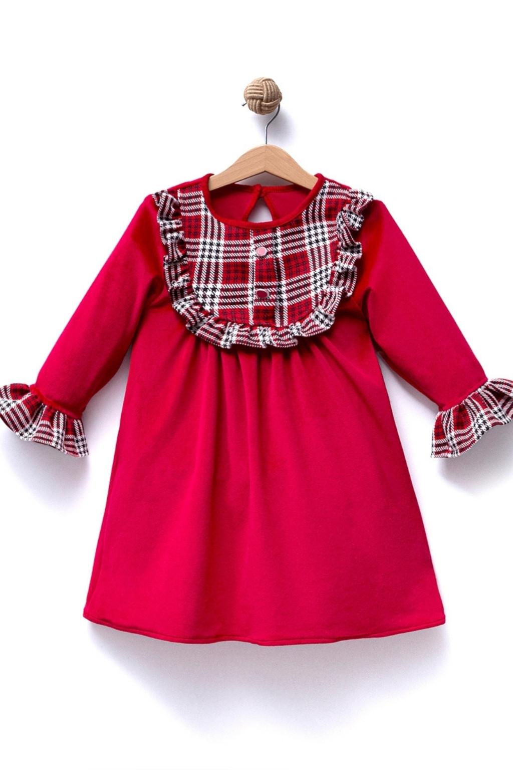 Kız Çocuk Yaka Detaylı Kadife Elbise, yumuşak kadife kumaşı ve zarif yaka tasarımıyla hem şık hem konforlu bir seçenektir. Volanlı etek detayı ve rahat kesimi sayesinde özel günlerde olduğu kadar günlük kullanımda da ideal bir tercihtir. Serin havalarda hırka veya kaban ile kolayca kombinlenebilir.