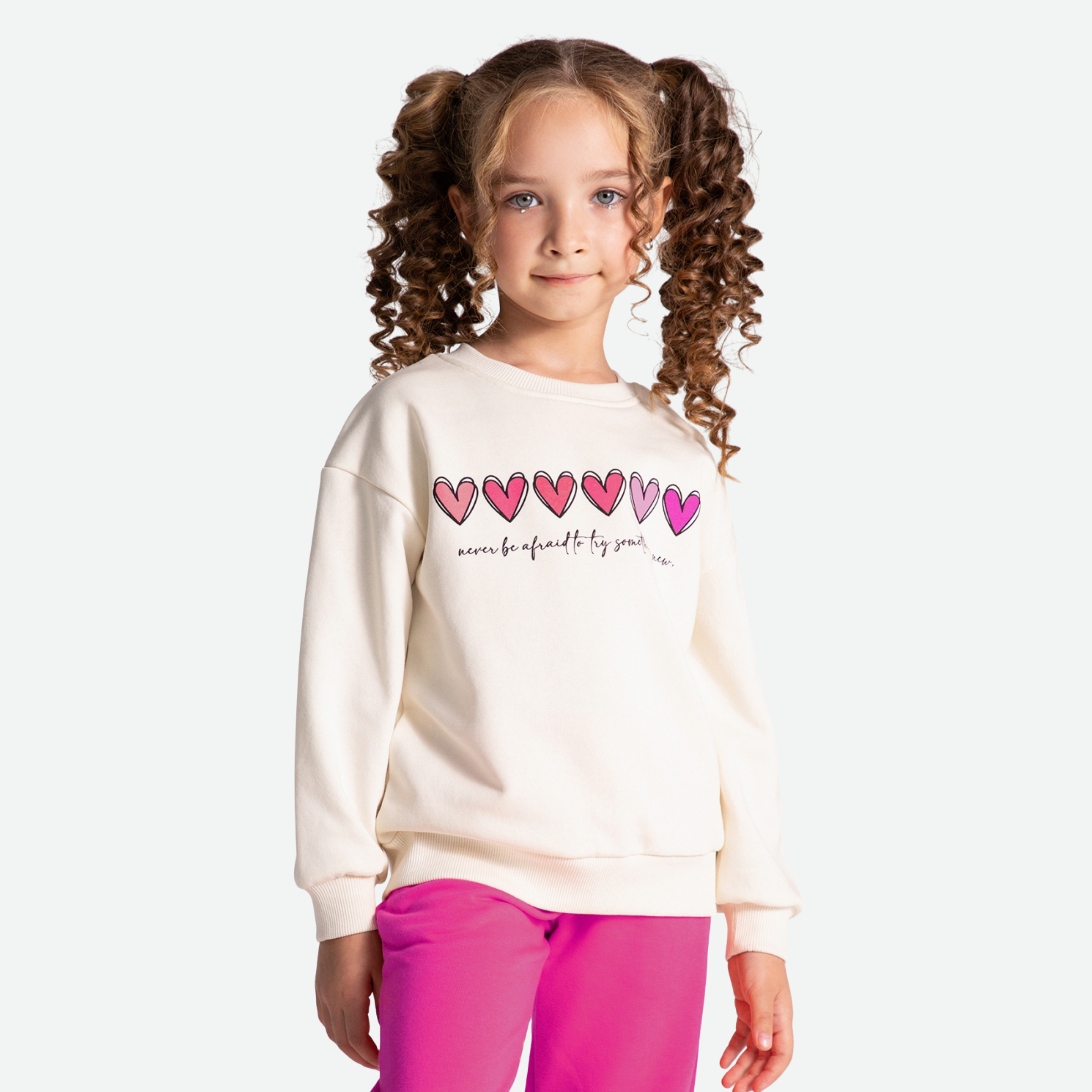 Takım, rahat bir kesime sahip olmakla beraber, şık detaylar ile zenginleştirilmiştir. Üst parça, katmanlı bir görünüm sunmakta olup, geniş kesimi sayesinde hareket serbestliği sağlar. Alt parça ise, lastikli bel yapısı ile kolay giyilip çıkarılabilir ve aynı zamanda taşınabilir bir konfor sunar. Ürünün tasarımında dikkat edilen en önemli unsurlardan biri, kız çocuklarının enerjilerini yansıtan dinamik çizgilerdir.