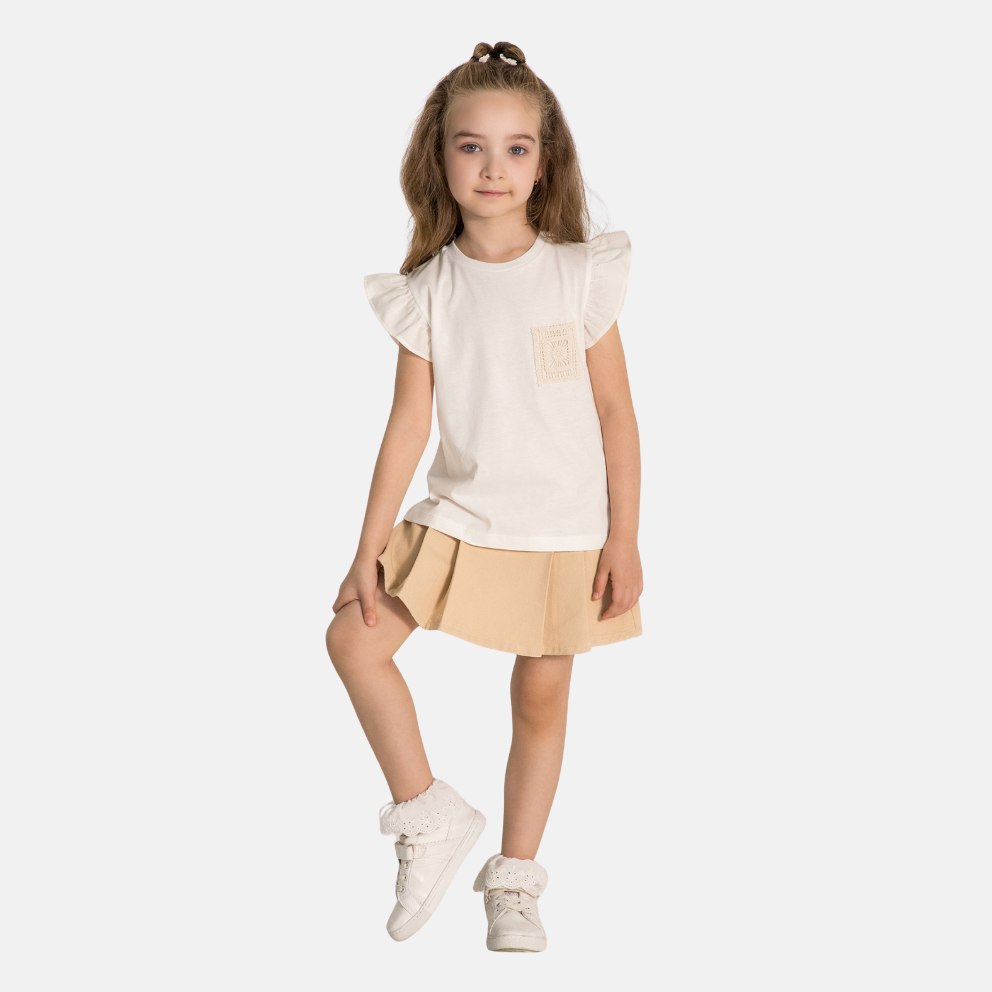 Kız Çocuk Etekli Alt Üst Takım, spor ayakkabılarla rahat bir görünüm elde edebileceğiniz gibi, şık sandaletler ile de tamamlayarak özel günlerde kullanılabilir. Üst kısımda kullanılan desen veya renk detaylarını baz alarak uyumlu bir çanta veya saç aksesuarı ile kombinleyebilir, kızınıza özgün ve şık bir hava katabilirsiniz.