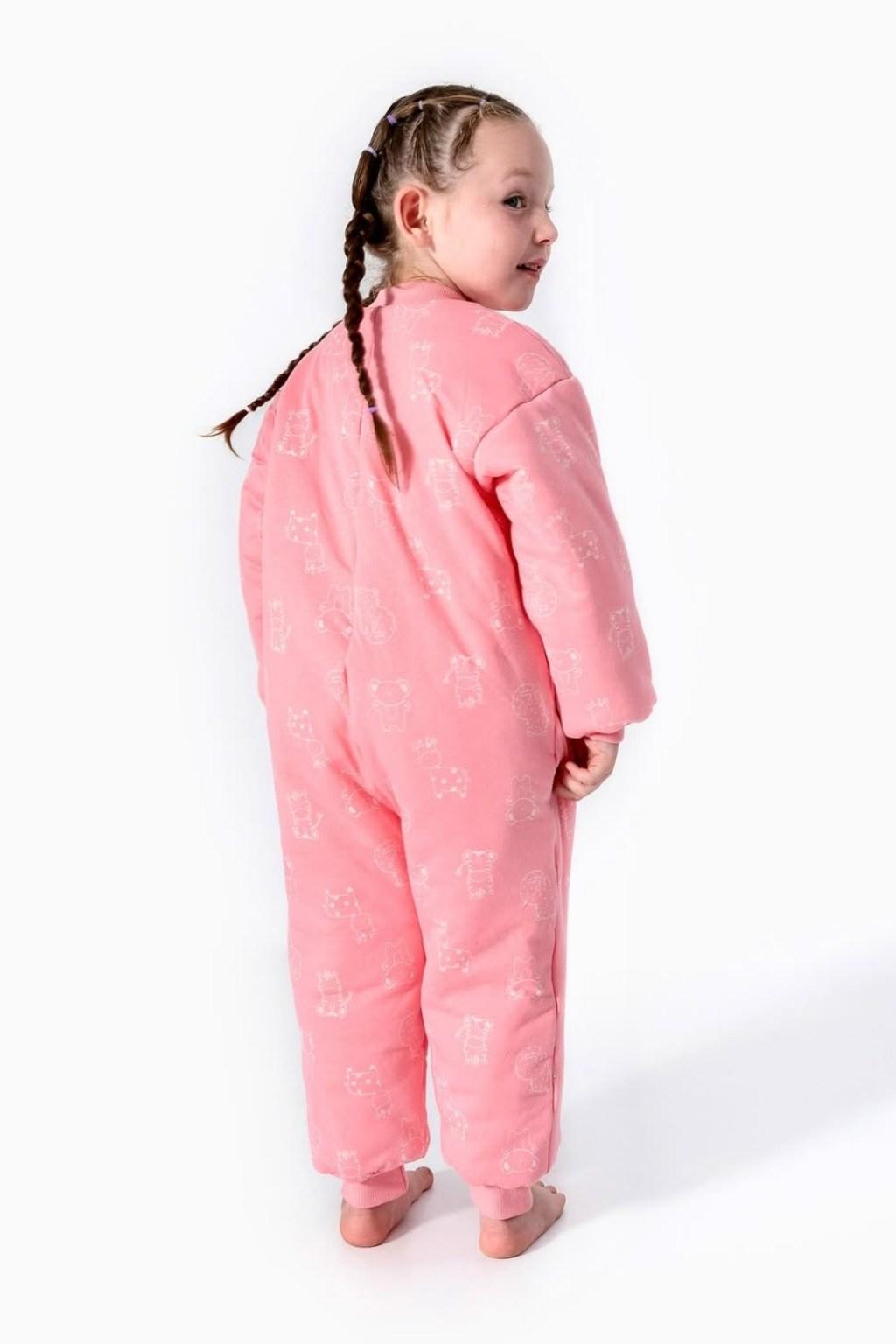 Sevimli desen detaylarına sahip pembe kız çocuk tulum pijama, tek parça yapısıyla hem rahat hem pratik bir kullanım sunar. Önden fermuarlı tasarımı sayesinde kolayca giydirilir. Yumuşak dokusu çocukların uyku saatlerinde konfor sağlar. Ev giyimi ve pijama olarak ideal bir tercihtir.