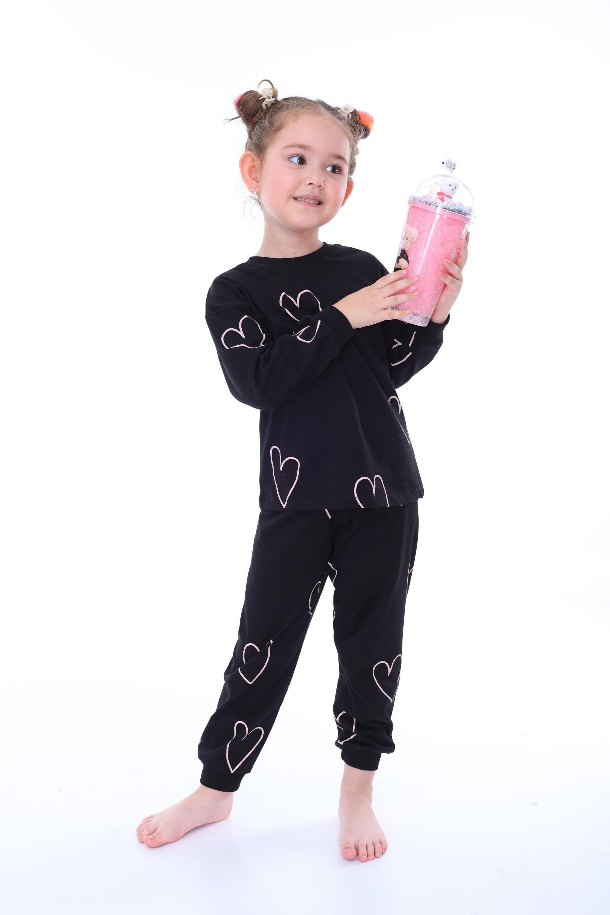 Kız Çocuk Kalp Desenli Pijama Takımı