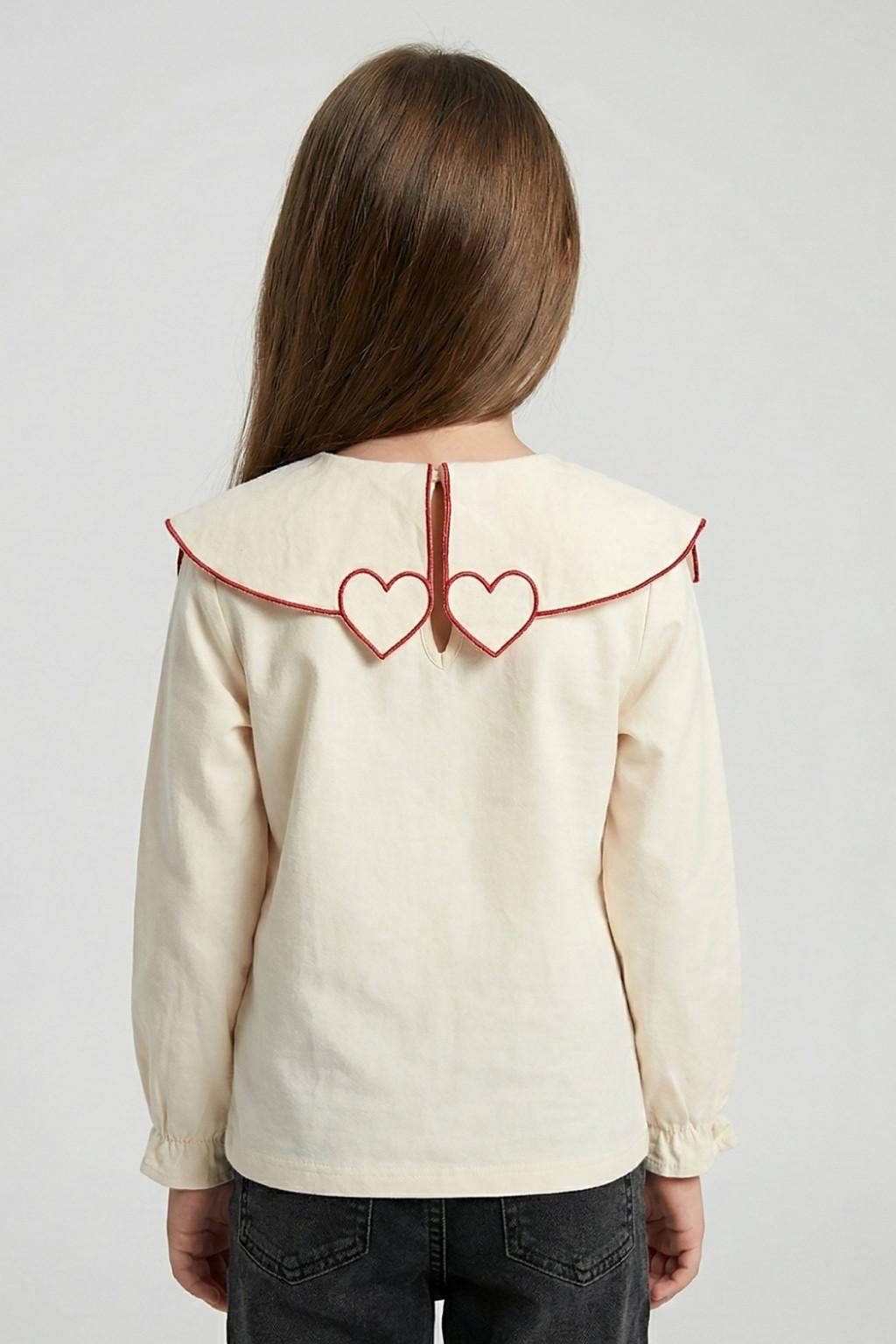 Zarif tasarımıyla dikkat çeken kız çocuk nakış yakalı bluz, şık ve rahat bir görünüm sunar ❤️