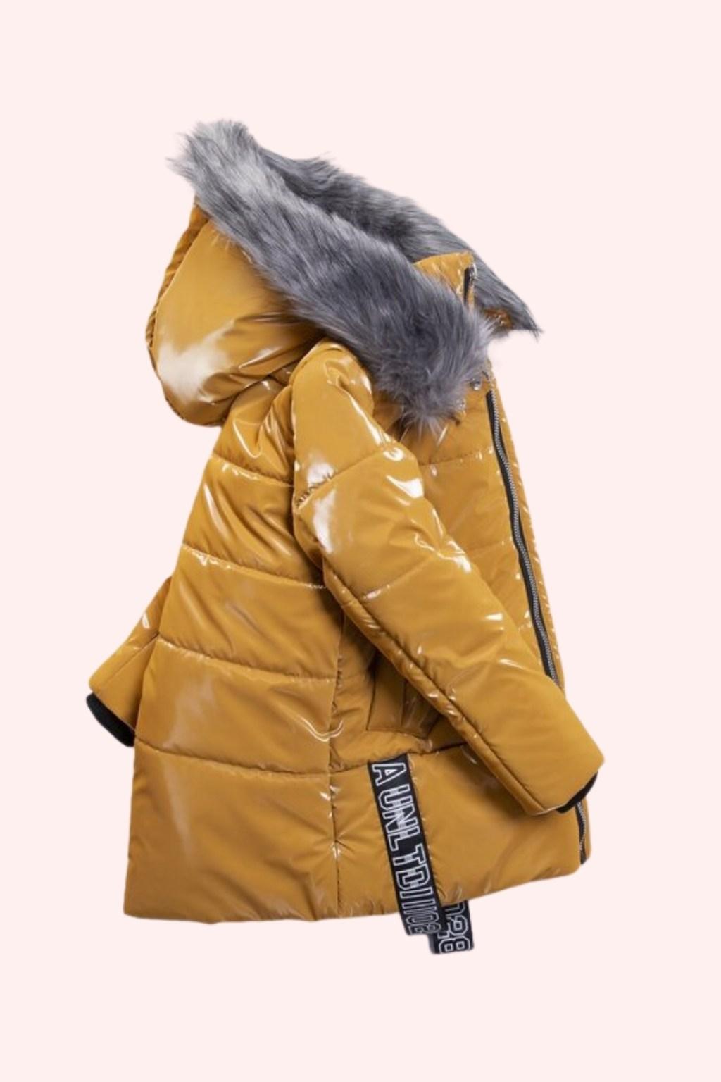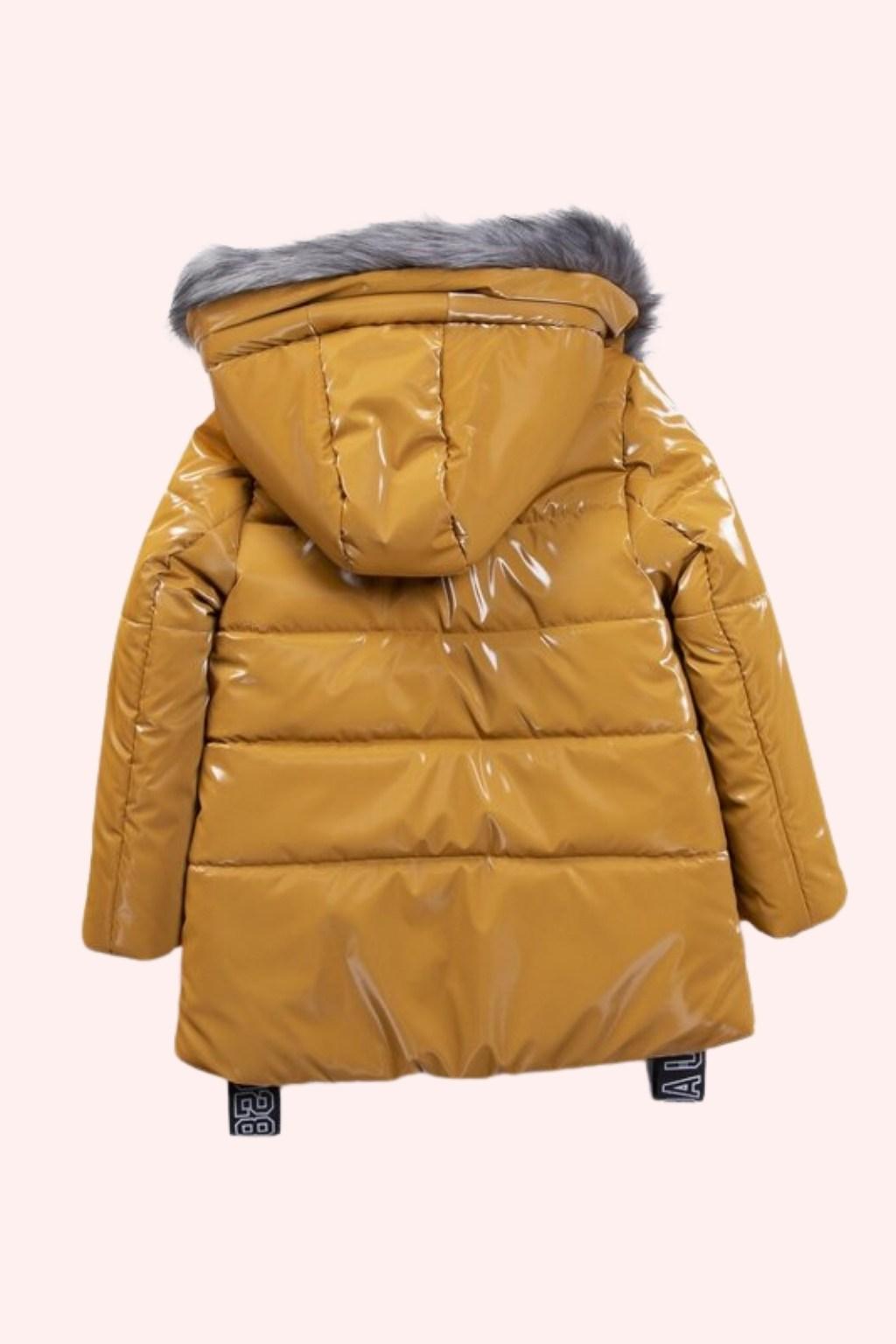 Hardal rengi parlak dokusuyla dikkat çeken bu kız çocuk şişme mont, kış aylarında hem sıcak hem de şık bir kullanım sunar. Kapüşon kısmındaki yumuşak kürk detayı ekstra koruma sağlarken, uzun kesimi rüzgâra karşı daha iyi kapanır. Fermuarlı tasarımı sayesinde kolay giydirilir; cepli yapısı günlük kullanımda pratiklik katar. Okul, günlük kombinler ve soğuk havalar için ideal bir dış giyim parçasıdır.