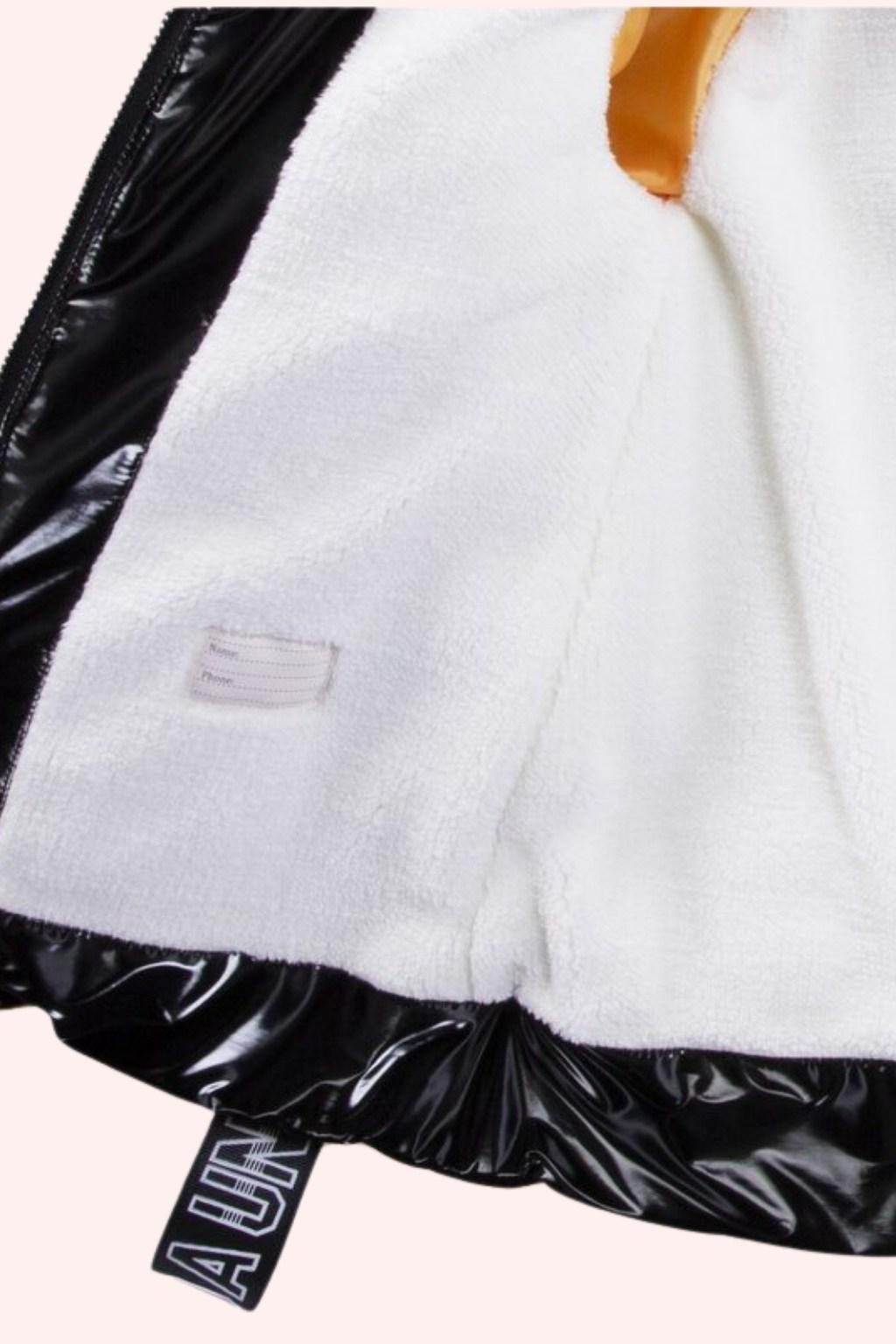 - Detay: Kapüşonlu, kürk yaka, parlak yüzey