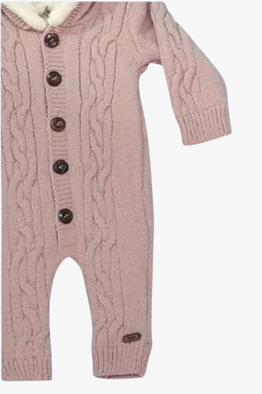 Zarif örgü deseni ve peluş kapüşon detayıyla tasarlanan bu triko bebek tulum, kış aylarında maksimum konfor sunar. Önden düğmeli yapısı sayesinde kolay giydirilir. Yumuşak dokusu bebeğinizin hassas cildine uyumludur. Günlük kullanımda, dış mekan kombinlerinde ve özel günlerde şık bir görünüm sağlar.